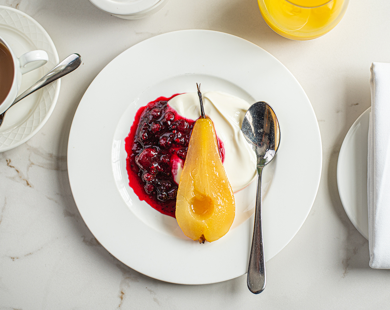 Enjoy a steaming cup of coffee in the dappled morning sunlight while you order your breakfast favourites.